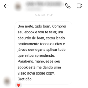 Quando finalmente entendi isso, comecei a estudar dias e mais dias, foi aí que fui desenvolvendo minhas próprias habilidades como copywriter e finalmente consegui desenvolver meus próprios copys e garanto, você também vai conseguir escrever um copy que converta, escrito por você mesmo, sei como é chato não conseguir sequer escrever uma frase, pensando nisso…